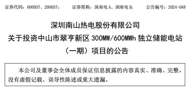 目的及影響方面,深南電A表示,投資中山市翠亨新區(qū)300MW/600MWh獨立儲能電站(一期)項目符合公司在新形勢下戰(zhàn)略發(fā)展的需求,有利于推動公司在大型儲能領(lǐng)域的探索與實踐,助力公司向綜合能源服務(wù)轉(zhuǎn)型;有利于公司充分利用現(xiàn)有資源,打造新型商業(yè)模式,推動公司全面轉(zhuǎn)型發(fā)展;有利于中山市深入貫徹落實“雙碳”政策,打造獨立儲能項目示范,協(xié)同儲能相關(guān)產(chǎn)業(yè)鏈;有利于盤活中山公司線路資產(chǎn),促進(jìn)國有資產(chǎn)的提質(zhì)增效。在確保公司日常經(jīng)營和資金安全的前提下,使用中山公司線路資產(chǎn)投資中山市翠亨新區(qū)300MW/600MWh獨立儲能電站(一期)項目不影響公司日常資金周轉(zhuǎn)需要,不影響公司生產(chǎn)經(jīng)營的正常開展。中山市翠亨新區(qū)300MW/600MWh獨立儲能電站(一期)項目產(chǎn)業(yè)方向符合公司未來的戰(zhàn)略布局,將會對公司未來的財務(wù)狀況及長遠(yuǎn)發(fā)展產(chǎn)生積極影響。