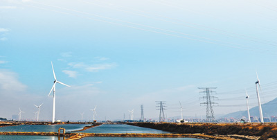 位于福建省莆田市平海灣的風(fēng)力發(fā)電場(chǎng)。