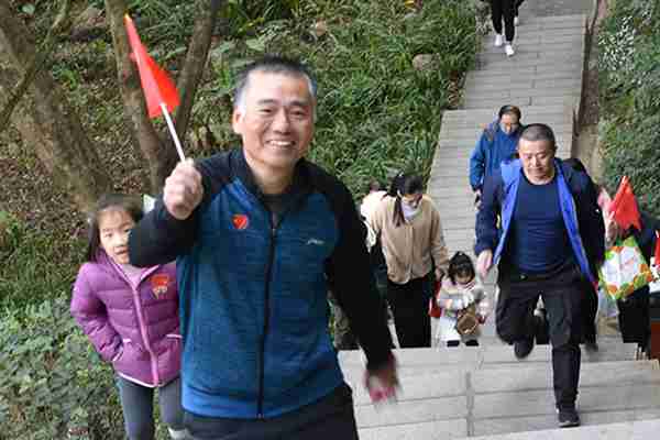 寒風凜冽,卻抵擋不住大家火一般的熱情。該公司員工們精神抖擻,神氣昂揚,你追我趕。家屬隊伍當中,有的父子同行,有的母女同行,有的全家上陣,其樂融融。不時吸引著路過的人們加入到登高健步走的方陣中來,感受著登高健步走帶來的快樂。