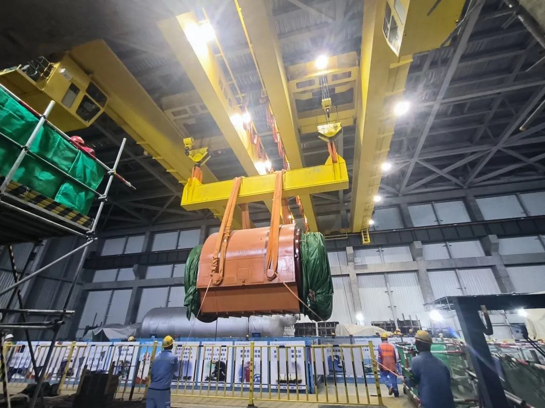 2024年9月14日20時(shí)28分,全球首個(gè)陸上商用模塊化多用途小型堆施工現(xiàn)場(chǎng),“玲龍一號(hào)”常規(guī)島汽輪發(fā)電機(jī)組定子成功落位在發(fā)電機(jī)基座上,標(biāo)志著發(fā)電機(jī)定子吊裝就位成功,為后續(xù)汽輪發(fā)電機(jī)組的安裝打下了堅(jiān)實(shí)的基礎(chǔ)。海南核電在超強(qiáng)臺(tái)風(fēng)“摩羯”影響中始終扛起“海南能源壓艙石”責(zé)任,成功抵御超強(qiáng)臺(tái)風(fēng),確保核電機(jī)組安全穩(wěn)定運(yùn)行,在建工程在臺(tái)風(fēng)過(guò)后迅速?gòu)?fù)工復(fù)產(chǎn)。