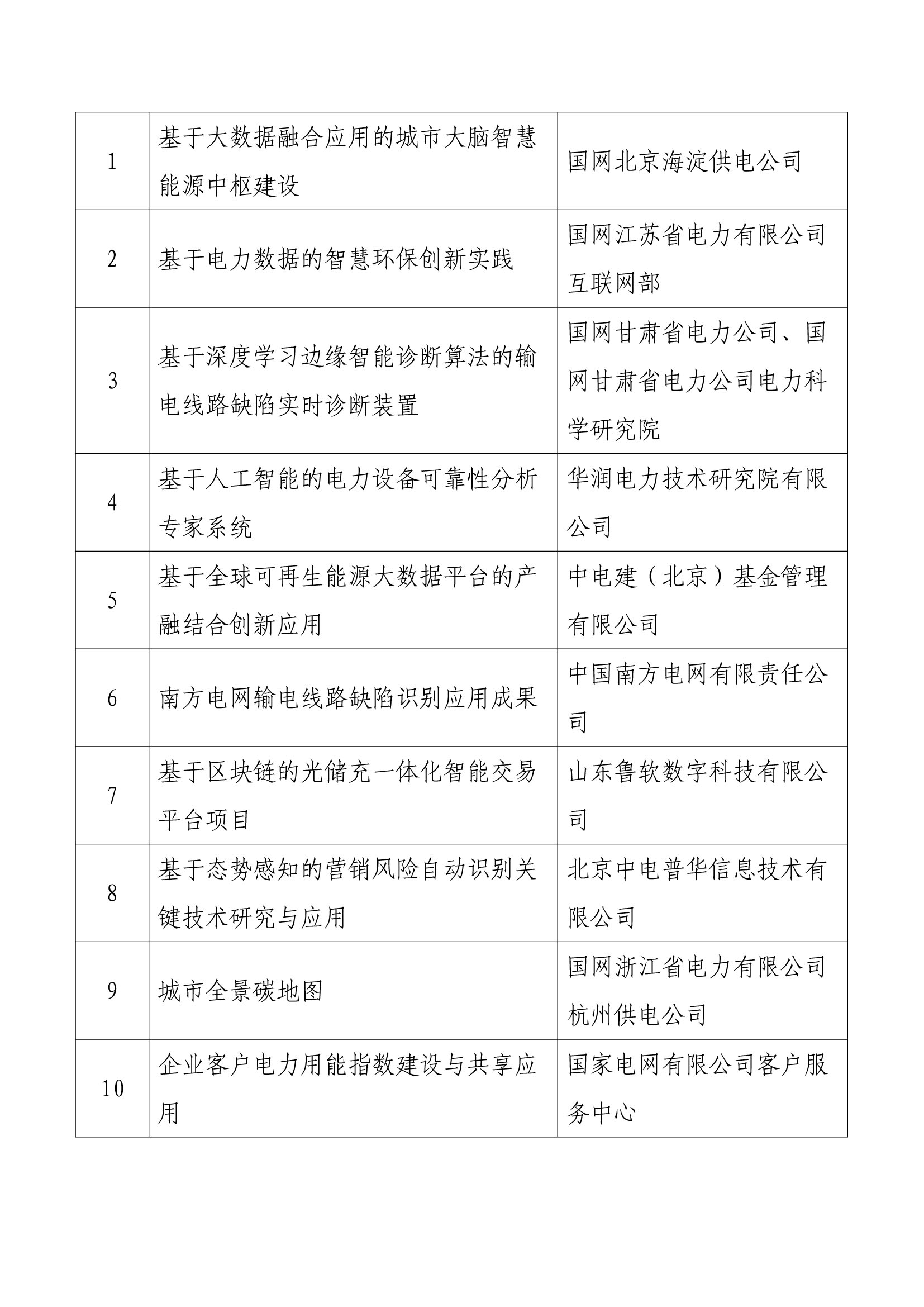 2021年度電力人工智能與大數(shù)據(jù)應用創(chuàng)新獎推薦獲獎成果名單