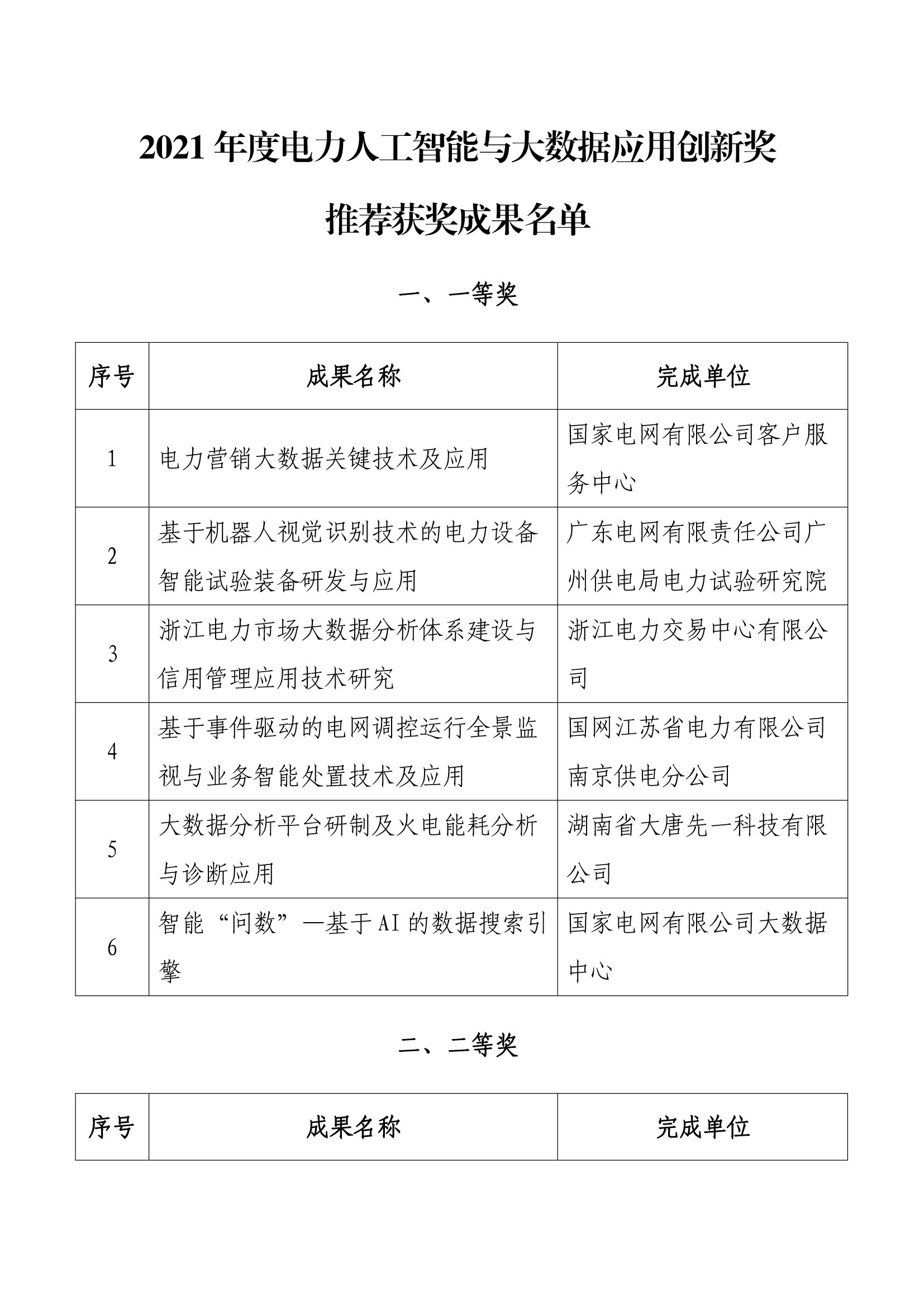 附件:2021年度電力人工智能與大數(shù)據(jù)創(chuàng)新應用成果獎獲獎名單