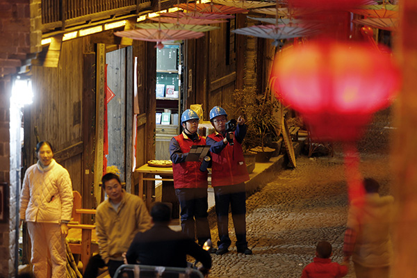 夜幕降臨,前童古鎮(zhèn)條條古巷的燈光開始亮起來,但古巷旁水渠里仍倒影著隊(duì)員們忙碌的身影。有了國網(wǎng)寧??h供電公司工作人員不辭辛勞的保供電,留浙過年的新寧海人在前童古鎮(zhèn)這個(gè)元宵節(jié)將過得格外溫暖。