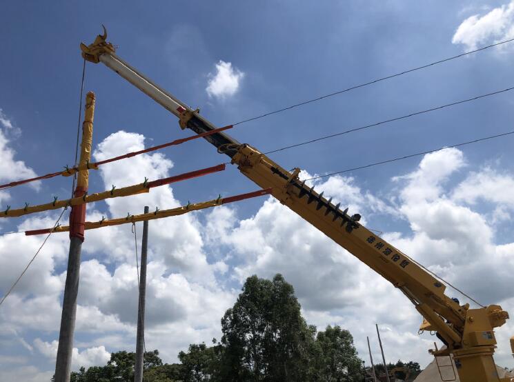 拉開三相導線、用黃色絕緣護具遮蔽電桿桿頂、吊車進駐現(xiàn)場……現(xiàn)場安全監(jiān)護、地面配合人員按照事先制定的作業(yè)方案有序配合。“右邊一點,好!慢慢向上移……”12時 20分,穿上“黃馬褂”的水泥電桿被吊臂車緩緩拉起、立直;確認調(diào)整好后,工作人員迅速開始回填電桿桿坑。經(jīng)過三個半小時的緊張作業(yè),帶電線路的“虎口”間被成功種下了一枚“水泥牙”,該局帶電組立電桿作業(yè)順利結束。