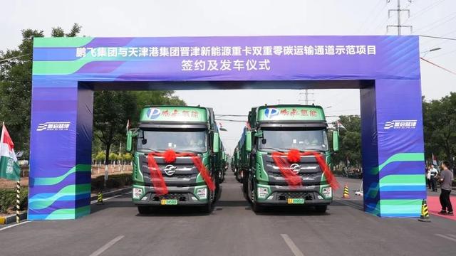 近日,在山西呂梁孝義市,當(dāng)?shù)匦履茉雌髽I(yè)鵬飛集團研發(fā)的20輛滿載“烏金”的二代氫能重卡往返天津港,全程僅需三次補能。