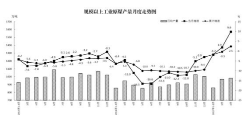 據(jù)國(guó)家統(tǒng)計(jì)局消息,統(tǒng)計(jì)局今日發(fā)布2017年4月份能源生產(chǎn)情況,數(shù)據(jù)顯示,規(guī)模以上工業(yè)原煤生產(chǎn)增速加快,價(jià)格有所回落;原油生產(chǎn)降幅收窄,原油加工量增速回落;天然氣生產(chǎn)快速增長(zhǎng);發(fā)電量增速放緩。