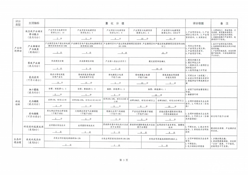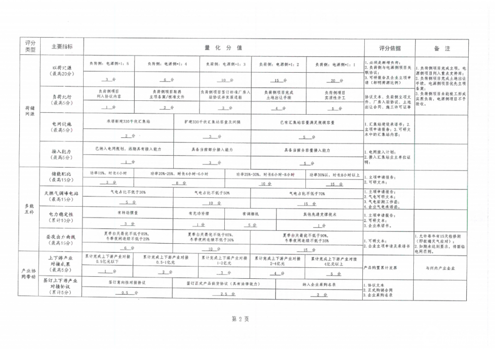 根據(jù)文件,其評分內(nèi)容主要包括企業(yè)投資能力、項目前期深度、荷儲網(wǎng)源、多能互補、產(chǎn)業(yè)協(xié)同帶動、生態(tài)治理以及地方經(jīng)濟貢獻等八大類,各類項目下面細小劃分35個小項。不同類別之間設置不同分值,以總得分計算排序。