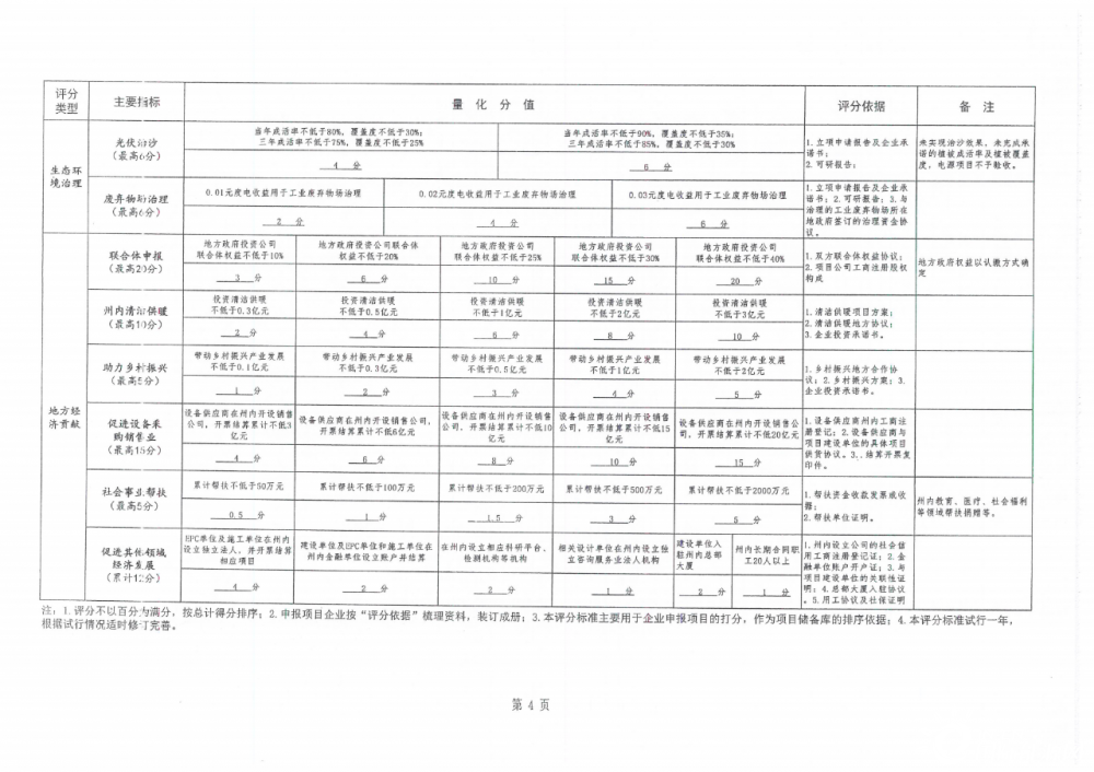 最終得分結(jié)果將作為項目儲備庫次序優(yōu)先的依據(jù),形成重點項目推薦表,上報至省能源局爭取項目。企業(yè)后續(xù)增加的證明資料可隨時補充得分。該標準將施行一年,并進一步完善、調(diào)整評分內(nèi)容和權重。