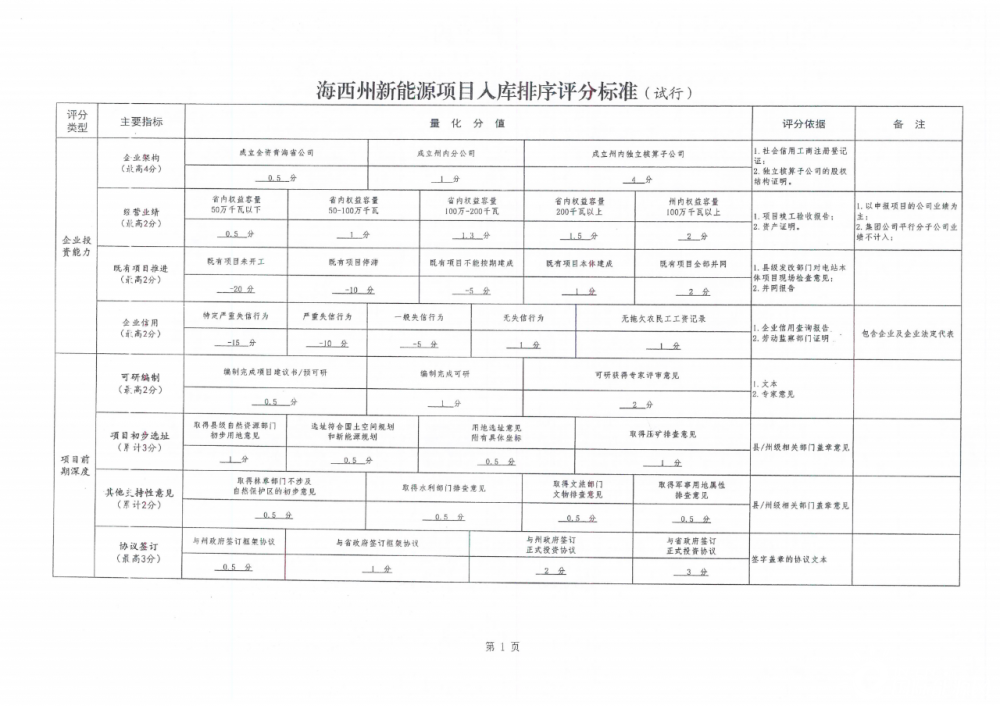 1月19日,青海海西州發(fā)改委印發(fā)《新能源項目入庫排序評分標準》,通過八大類35小項的評分類型對新能源項目進行評分排序。