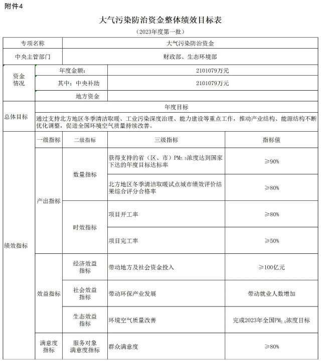 為支持大氣污染防治工作,促進(jìn)大氣質(zhì)量改善,現(xiàn)下達(dá)你省(自治區(qū)、直轄市、新疆生產(chǎn)建設(shè)兵團(tuán),以下簡(jiǎn)稱省)2023年大氣污染防治資金,用于支持開(kāi)展減污降碳等方面相關(guān)工作,并就有關(guān)事項(xiàng)通知如下: