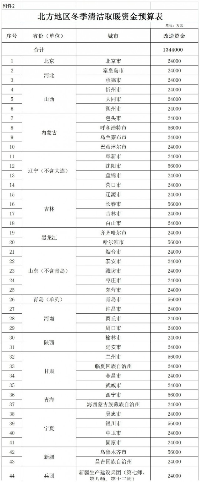 二、北方地區(qū)冬季清潔取暖資金額度詳見(jiàn)附件2、3。請(qǐng)相關(guān)省抓緊撥付資金,會(huì)同有關(guān)部門(mén)督促相關(guān)城市積極穩(wěn)妥地做好清潔取暖工作。