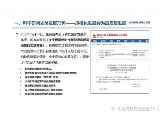 2022年7月21日,由中國光伏行業(yè)協(xié)會(huì)主辦的“光伏行業(yè)2022年上半年發(fā)展回顧與下半年形勢(shì)展望研討會(huì)”通過網(wǎng)絡(luò)直播形式順利召開。水電水利規(guī)劃設(shè)計(jì)總院新能源部副主任王躍峰作光伏發(fā)電特性和消納利用模式研究報(bào)告。王主任表示,站在當(dāng)前現(xiàn)在新能源發(fā)展的關(guān)鍵節(jié)點(diǎn),必須科學(xué)研判光伏的發(fā)展形勢(shì),正確認(rèn)識(shí)光伏的發(fā)電特性,才能更高效提升光伏發(fā)電利用水平。