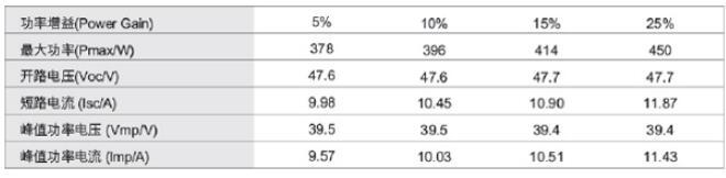 實(shí)際上,要理解這些并不難,較之常規(guī)多晶單晶組件,雙面組件的峰值功率電流及短路電流都有很大提升。為證明這一結(jié)論,我們不妨截取代表性組件企業(yè)主流功率段單晶組件(60片)的性能參數(shù)來(lái)看: