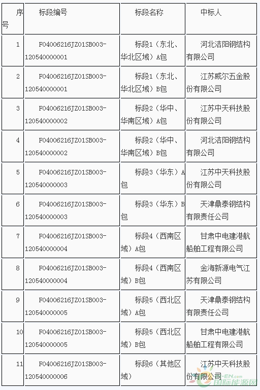 國家電力投資集團公司物資裝備分公司2017年第一批光伏組件支架集中招標(biāo)通過招標(biāo)評審,結(jié)果如下: