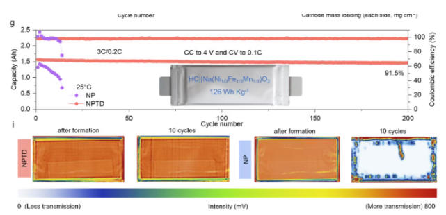 鈉電領(lǐng)域標(biāo)志性成果:北航王華團(tuán)隊(duì)實(shí)現(xiàn)鈉電軟包常溫3C快充,-20°C下0.5C充電,通過(guò)超聲成像技術(shù)分析結(jié)果進(jìn)一步證實(shí)了3C快充的安時(shí)級(jí)鈉離子軟包電池的安全性及穩(wěn)定循環(huán)。