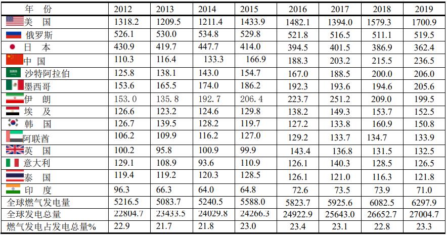 燃?xì)獍l(fā)電量最大的國(guó)家