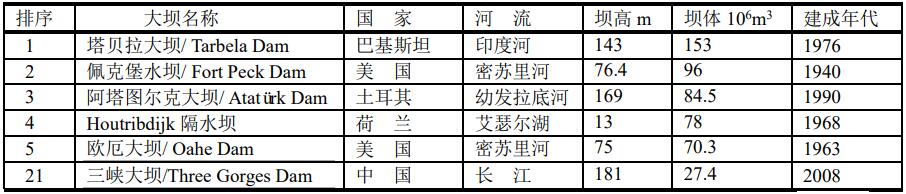 ▲ 中國最大的壩體是三峽大壩(Three Gorges Dam)2008年建成,構筑物高達181米,大壩體積為27.4百萬立方米,裝機容量22500MW。世界排名第21位。