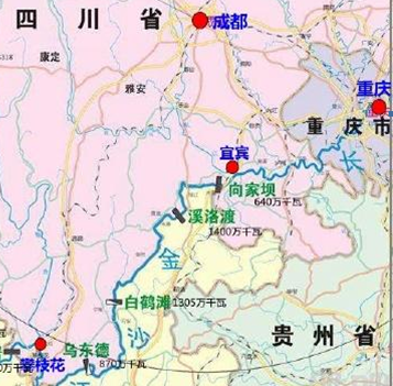 ▲ 在四川長江-金沙江段修建了四座世界級的水電站:向家壩、溪洛渡、白鶴灘、烏東德。這四座水電站裝機總容量達46508MW,為三峽水電站裝機容量22500MW的46508/22500=2.07倍。其年發(fā)電量為185.05/101.6=1.82倍。白鶴灘(Baihetan)僅次于三峽水電站成為中國第二大水電站。
